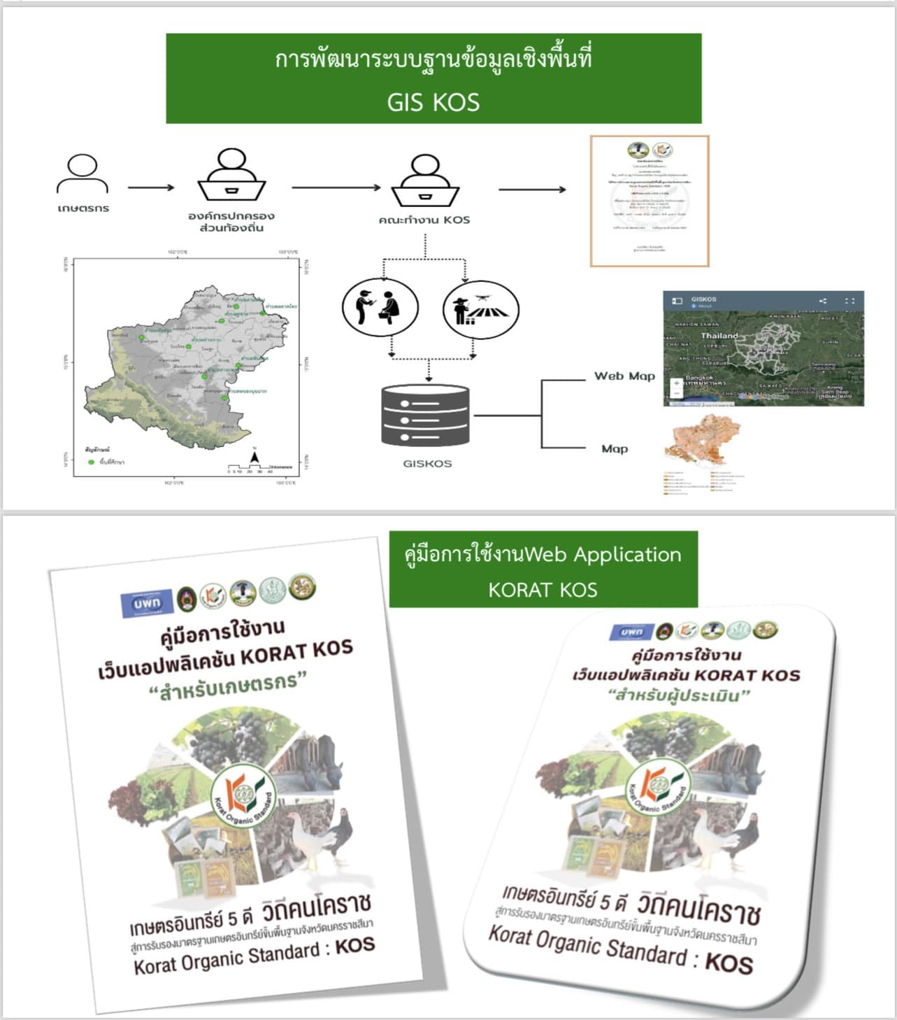มหาวิทยาลัยราชภัฏนครราชสีมาได้ร่วมกับจังหวัดนครราชสีมา และหน่วยงานด้านการเกษตรพัฒนาระบบ “มาตรฐานเกษตรอินทรีย์ขั้นพื้นฐานจังหวัดนครราชสีมา (Korat Organic Standard: KOS)” เพื่อส่งเสริมให้เกษตรกรปรับเปลี่ยนระบบการผลิต ลดการใช้สารเคมี และจัดการที่ดินเพื่อการเกษตรอย่างยั่งยืนตามหลักเกษตรอินทรีย์ภายใต้โครงการนี้ มหาวิทยาลัยมีบทบาทสำคัญด้านวิชาการ วิจัย การอบรม และการลงพื้นที่ เพื่อถ่ายทอดความรู้ด้านการฟื้นฟูดิน การจัดการทรัพยากรธรรมชาติ และระบบเกษตรอินทรีย์เชิงนิเวศ เพื่ออบรมให้ความรู้แก่เกษตรกรในจังหวักนครราชสัมา โดยผู้เข้าร่วมอบรมไม่เสียค่าใช้จ่าย (ฟรี) ส่งผลให้เกษตรกรจำนวนมากสามารถยกระดับการจัดการที่ดินอย่างเหมาะสมและมีความยั่งยืนมากขึ้น