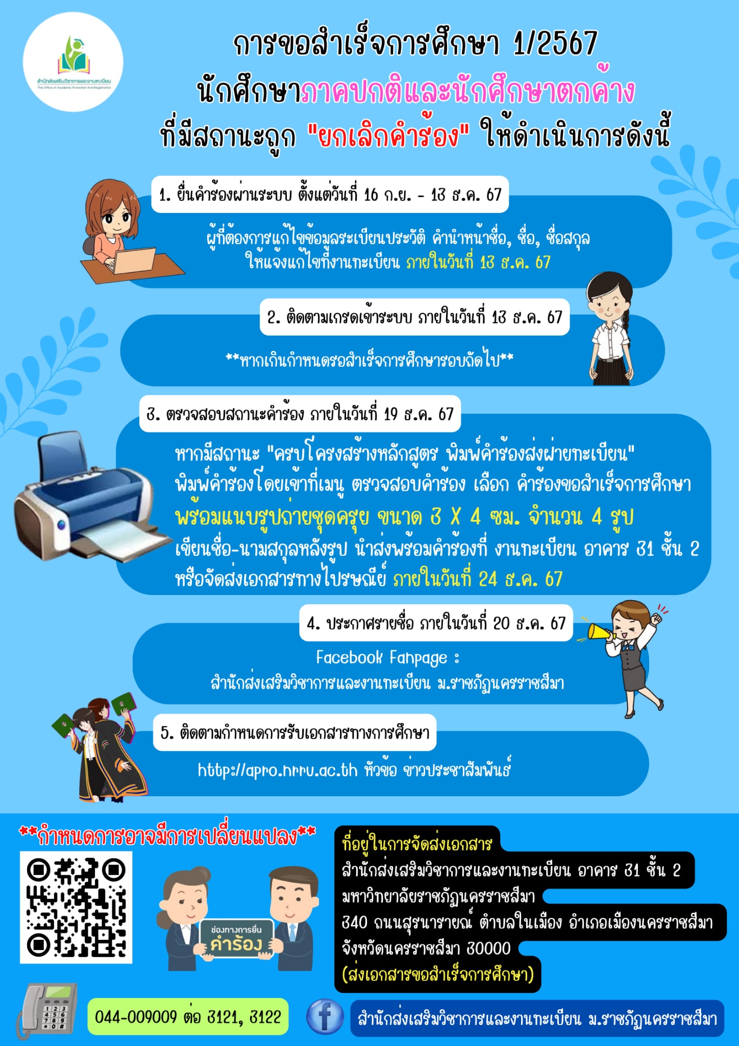 สำนักส่งเสริมวิชาการและงานทะเบียนได้เผยแพร่ ขั้นตอนการขอสำเร็จการศึกษา สำหรับนักศึกษาภาคปกติ กศ.ปช. และนักศึกษาต่างคณะ ผ่านสื่อประชาสัมพันธ์ออนไลน์อย่างชัดเจน เช่น